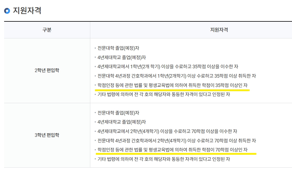 이렇게 학점인정 받은 것도 원디대 편입 조건에 부합할까요?