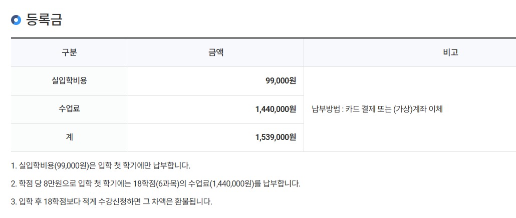 등록금은 아래와 같습니다.