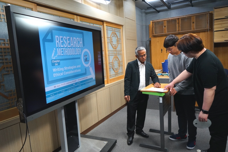 원광디지털대학교를 방문한 라오스 국립대학교 관계자 6명은 강의 설계부터 촬영, 편집 등의 영상 제작 전 과정을 함께 하며 한국의 이러닝 시스템을 체험했다.