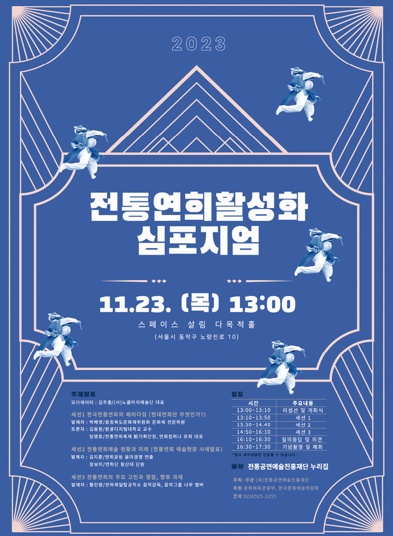 [‘2023 전통연희활성화 심포지엄’ 홍보 포스터. 전통공연예술진흥재단 제공]